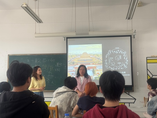 教师张丽华开展联袂授课,围绕“传统文化在当代设计中的创新表达”课程主题,通过跨学科对话,多维度解析,为22名学生呈现了一堂有深度、有温度、有力度的专业课程思政。