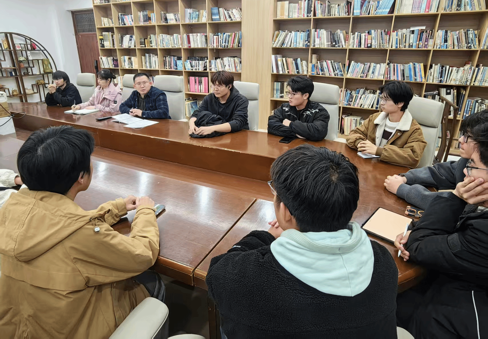 座谈会上,学生们踊跃发言,分享了自己秋季学期的感受和体验,围绕课程学习、专业实践、日常生活、未来规划等方面提出了自己的疑惑和想法。王年文副院长结合自身的教学经验和行业实践,耐心细致地为学生们答疑解惑,分享了许多宝贵的学习建议和职业发展规划思路。他鼓励学生们积极参加各类设计竞赛和实践活动,提升自己的专业技能和综合素质,过有意义的大学生活。