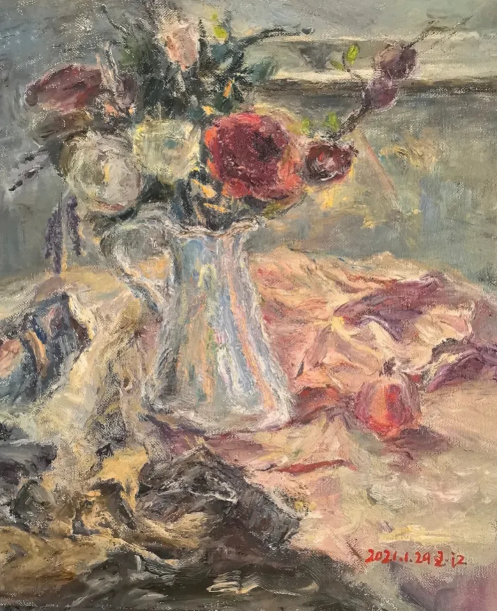 ,主持油画艺术教学至今。他的艺术探询注重风景写生,践行于实处,坚持“写生中创作”基于现实主义审美意识。他画大东北的黑土地、燕山深处古村落、平常的静物,在色彩感受上注重情感的融入,有感于人间冷暖和岁月沉沦的痕迹,显之于笔触。他是上个世纪六十年代初生人,也是八十年代东北师范大学美术系毕业的大学生,他的画有着一代人的共同记忆和审美范式。感伤,且不失担当;朴华,且不显于技巧;凝重,且同频于时代。“笔墨当随时代”(石涛),他的艺术是一代人对于一方山水的真情坦露和端正表述。在他的油画艺术中亦能看到现实主义美术的印迹和近代中国乡土美术的抒怀。他的油画色彩沉郁、厚重,笔触朴华、灵动,显示出画者对于油画语言的高度淬炼和深刻理解,对于欧洲油画传统内在意蕴和审美范式的深入思考。他的艺术表达是真实的,这在艺术当下显得弥足珍贵;亦是朴素的,这正是一位高校教授人文修为的本色呈现。