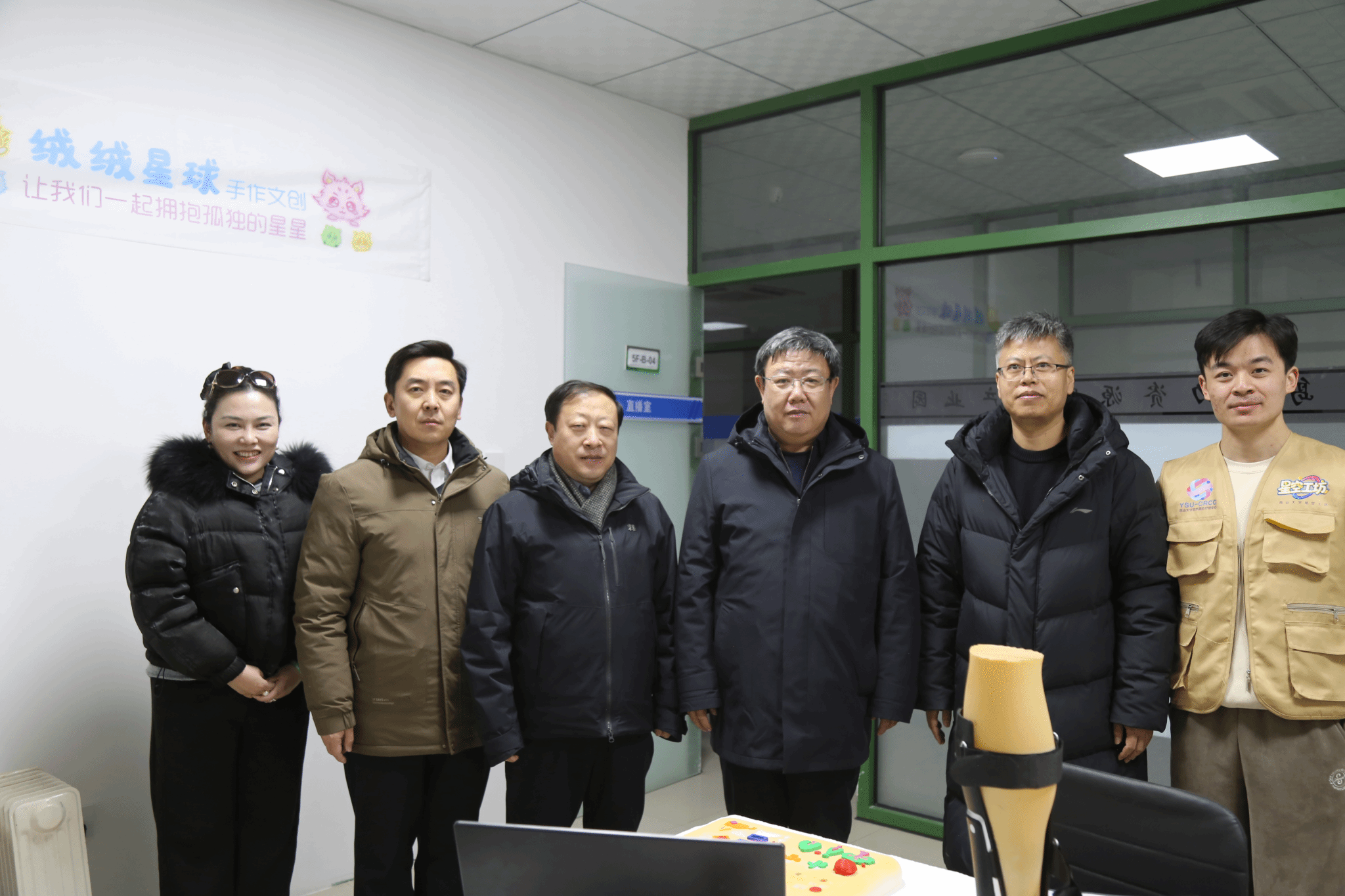 考察过程中,领导一行对工作站的跨学科建设模式、“产学研用”一体化推进思路给予充分肯定,认为燕山大学以学科赋能回应社会关切,将设计学、心理学、康复工程等学科优势与残疾人就业扶持、健康产业发展等国家战略紧密结合,既为失能群体提供了从技能提升到心理关怀、从创作实践到就业增收的全方位支持,也为“设计+康养”领域的学科发展与人才培养提供了宝贵实践经验。