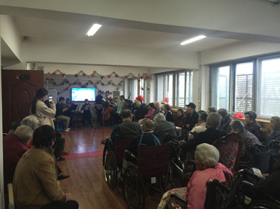 随着歌曲《爱》、《咱老百姓》、《跟往事干杯》、《天路》、《孝敬父母》、《父亲》,乐器合奏《金婚+蓝色多瑙河》、《渔舟唱晚》、《远方的客人请你留下来》、《喀秋莎》、《赛马》等精心准备的节目交替精彩上演,让老人们感受到了来自大学生这一群体的关注与关爱,所有同学与老人共同合唱的《感恩的心》,将得温情满全场的气氛推向高潮。演出过程中,每至精彩之处总能博得阵阵喝彩,现场一片欢声笑语,同学们也深深被现场的氛围所打动,与老人们一同度过了一个美好又值得纪念的下午,让沐浴在日光下的老年公寓愈发显满。