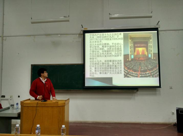 中国共产党第十九次全国代表大会于2017年10月18日至10月24日在北京召开。大会以“不忘初心、牢记使命,高举中国特色社会主义伟大旗帜,决胜全面建成小康社会,夺取新时代中国特色社会主义伟大胜利,为实现中华民族伟大复兴的中国梦不懈奋斗”为主题。而作为党的十九大的主线,习近平新时代中国特色社会主义思想也引来人们的广泛探讨和热议。因此,陈步伟老师从“习近平新时代中国特色社会主义思想的形成基础”、“习近平新时代中国特色社会主义思想的主要内容和重要意义”以及“如何贯彻习近平新时代中国特色社会主义思想”三大方面对习近平新时代中国特色社会主义思想进行了全面的剖析与解读。