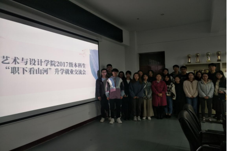 2017级本科生在美术馆C305开展了“职下看山河”升学就业交流会。本次活动邀请了工业设计、产品设计、环境设计专业4位优秀学生代表分别就考研、保研、出国、就业四个方向做了详细的介绍,在座的同学们都收获颇丰。