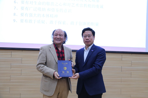 汉风教授,系国家一级美术师,河北省美术家协会副主席,中国美术家协会会员,河北省书画院副院长,第十届、第十一届河北省政协常委,河北省人民政府文史馆特约研究员,河北省政协文史馆馆员。讲座中,汉风教授围绕“艺术创作的秘密”主题,讲述了其对艺术的感悟,对艺术创作中博大情怀、独特理念、自由精神、生命与艺术内在合一的理解。从意识在艺术创造中的作用,意识作为艺术创造过程中伦理及价值的把关者,潜意识对于艺术创造的重要意义等方面阐述了意识形态与艺术创造的关系。从直觉和潜意识的觉醒对于艺术创造的意义、打破恒常性对艺术的意义以及时空观的更新对于艺术创作的影响等方面剖析了艺术创造的主要特征。讲座最后,汉风教授与现场师生就围绕艺术创作进行了互动交流。