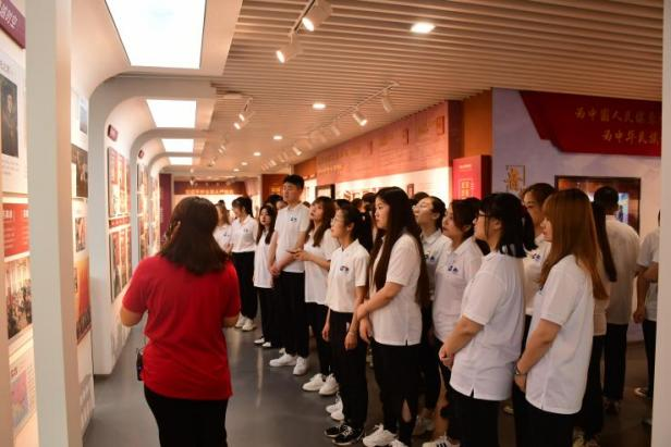本科生第三党支部新党员、党员组织生活馆讲解员时歌带领新党员们参观燕山大学组织生活馆,并对各个展厅进行详细的讲解。首先参观的是宣誓厅;其次是展示中国共产党经过浴血奋战、不懈奋斗,带领中国人民从站起来、富起来到强起来的红色历程厅和展示共产党人坚定的理想信念的精神画谱厅;最后是展示近年来社会以及高校系统内部典型案例的风纪镜鉴厅和展示100位楷模人物光荣事迹的英模礼赞厅。