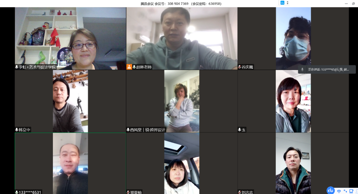 根据设计学类专业基础课《设计表现》的教学安排,组织承担教学任务的10名任课教师进行线上集体备课,同步开展该课程的课程思政专题研讨活动,活动由副院长赵琳主持。
