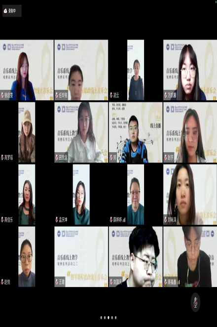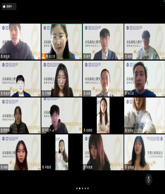 音乐会结束之后,与会老师们发表了感受。潘雅清老师认为:“看了整场的学生们演奏都很好,我觉得心灵上很触动。接下来我们运用有线上展开音乐活动,希望大家更加努力完善自己。”孙英老师指出,多次走台加上这一次正式汇报,能看得出同学们真的是非常努力。首先态度上就很端正,很重视汇报,我和金老师能明显的感受到每位同学每一次的进步。还有互助友爱精神也很感动。赵悦老师祝贺同学们,鼓励同学们今天在线上音乐会表现的非常非常棒。金红莲老师指出,第一次钢琴课程思政音乐会圆满成功,钢琴专业老师和同学们共同努力是密不可分的,红色经典钢琴音乐演奏的同学和与会聆听音乐会的同学们对红色音乐产生了认知、认可、认同与共振。