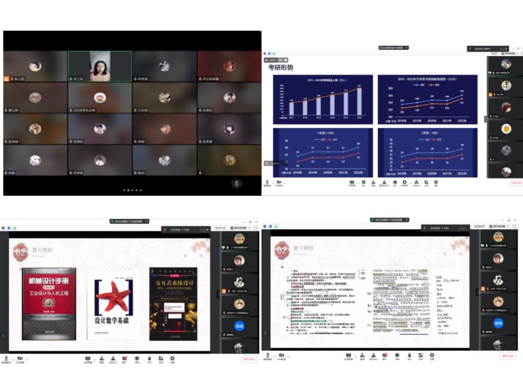 为提高分享交流针对性的主题性,本次活动根据学科专业情况分为6个会场,邀请来自工业设计、产品设计、视觉传达设计、环境设计和音乐与舞蹈专业,分别考取北京理工大学、四川大学、首都师范大学和燕山大学等学校的18名考研上岸学生担任主讲。从备考经历、各科复习方法、目标学校及专业选择、考研调剂注意事项、考研心理调适等方面进行了经验分享,帮助同学们把握考研政策,树立正确的考研观,科学掌握备考方法,合理调适备考情绪,让同学们更加明确考研的意义,增强考研的信心和决心。活动中,18名主讲纷纷对2023届考生送上祝福,祝愿2023届考生坚持自己的梦想,在追梦的路上不要停止脚步,成功上岸。