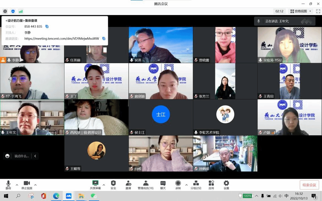 “培养什么人,如何培养人”是教育的根本问题。工业设计系的两个专业工业设计专业和产品专业,作为国家“双一流专业”建设点,为深入推进教学研究与现代信息技术的深度融合,有序推动教学改革与教学模式创新,提升人才培养质量,2022年10月13日,工业设计系的进行了“金课群”课程建设教学研讨会,会议基于腾讯会议,采用线上方式举行。