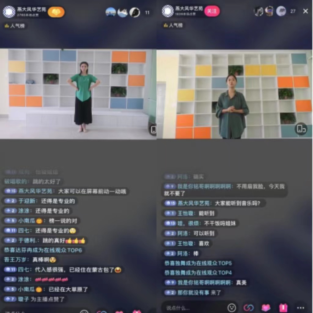 通过云直播方式安排了三场舒缓舞蹈互动练习,通过简单的舞蹈让同学们在宿舍舒展筋骨,锻炼身体。