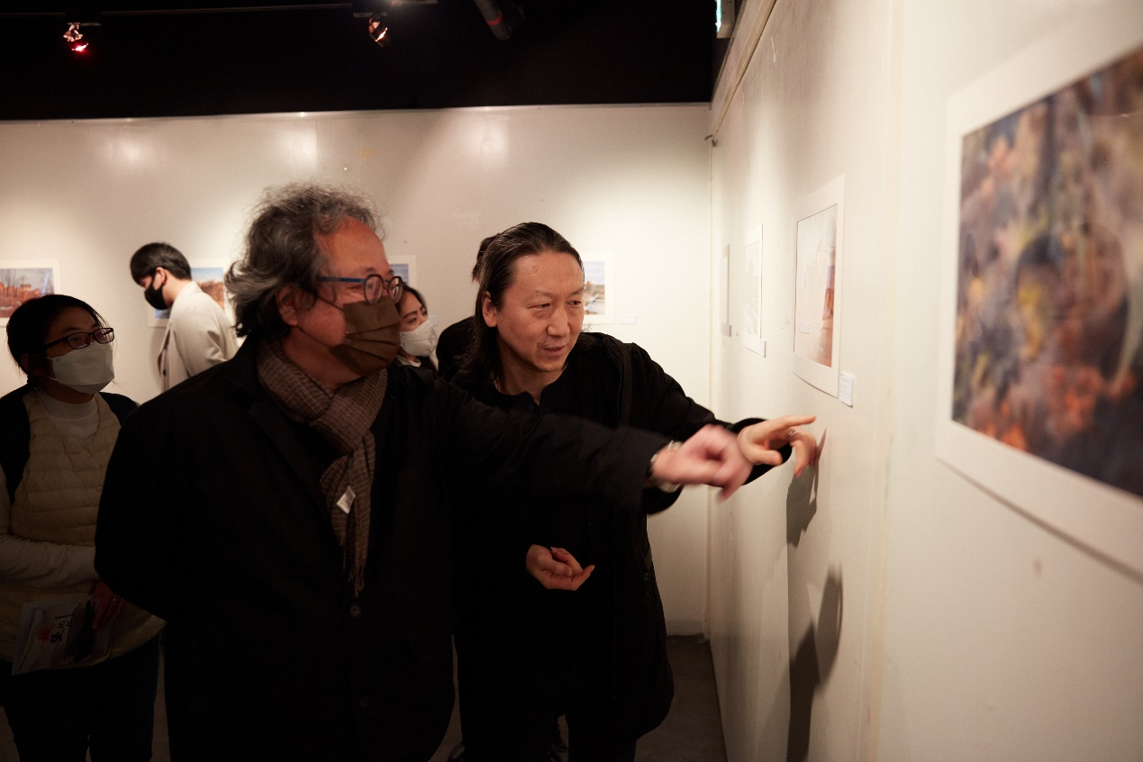 郝建斌老师陪同韩国崇实大学MaatLab负责人尹晟成教授观看画展