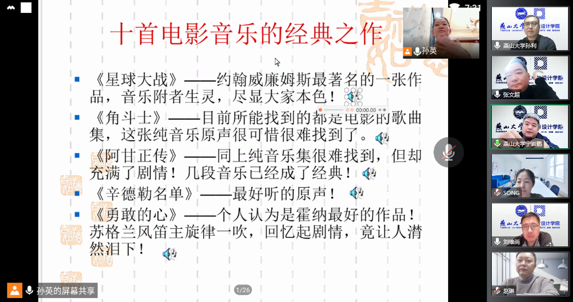 09课程名称:《欧美电影音乐赏析》任课教师:孙英