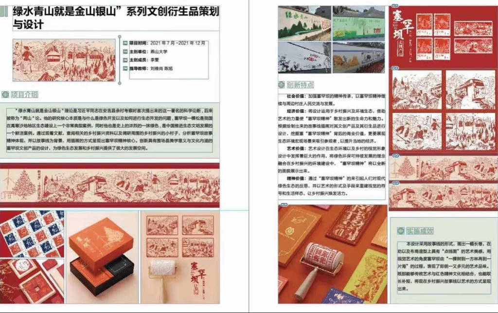 12月10日,中共中央宣传部“学习强国”学习平台以《【菁菁教苑】我为乡村做设计,高校师生在行动》为题,报道了未来设计师·全国高校数字艺术设计大赛(NCDA)组委会与民政部直管智惠乡村志愿服务中心联合发起“我为乡村做设计”志愿服务活动。我校被授予“全国高校设计赋能乡村振兴志愿服务先进单位”荣誉称号,同时我校设计赋能乡村振兴创新案例《承德市围场满族蒙古族自治县腰站镇公共空间设计项目》和《“绿水青山就是金山银山”系列文创衍生品设计项目》入选设计的力量—全国高校设计赋能乡村振兴创新案例。该荣誉是对我校积极开展设计赋能区域社会发展,投身美丽河北乡村振兴志愿服务方面取得成果的肯定,同时也激励老师同学们继续以“设计为人民服务”结合专业积极开展乡村振兴的设计创作,为建设美丽河北贡献燕大力量,助力学校双一流建设。