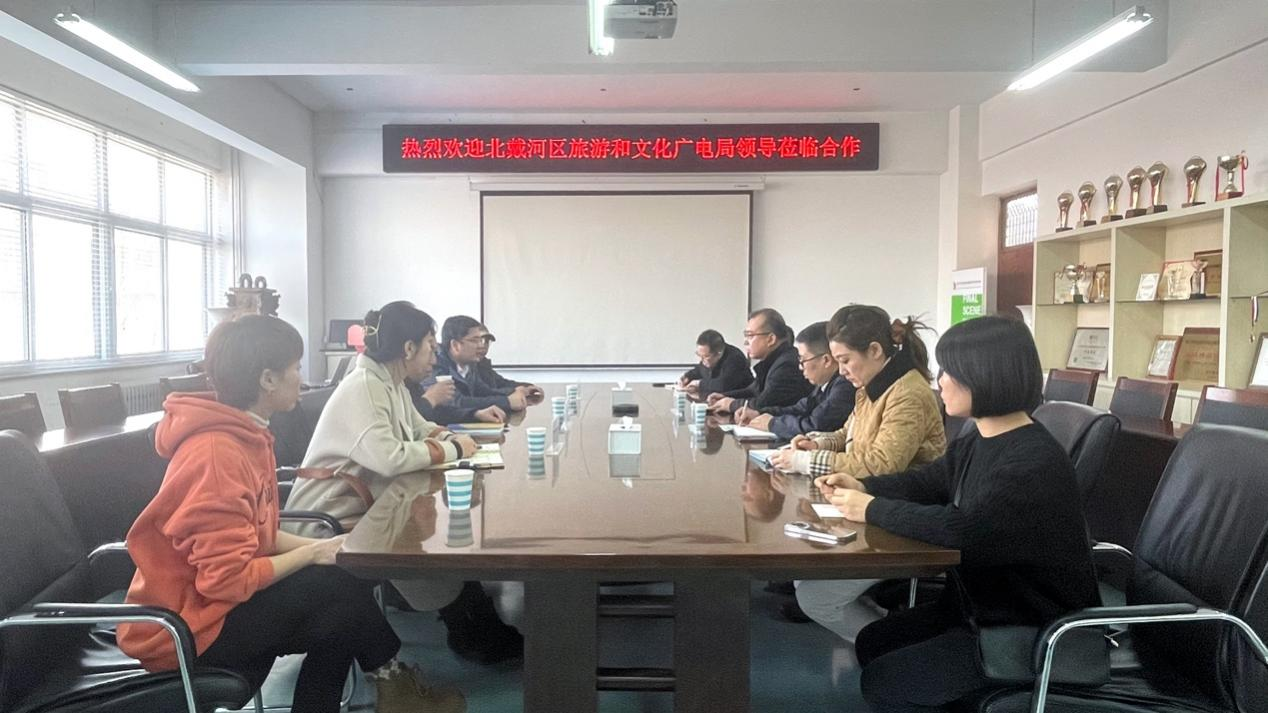 近些年的艺术赋能典型案例及合作模式进行了详细介绍;北戴河区旅游和文化广电局副局长杜振庭、周娇娇,北戴河区非遗协会会长刘英哲分别与各系部负责人进行了业务对接。