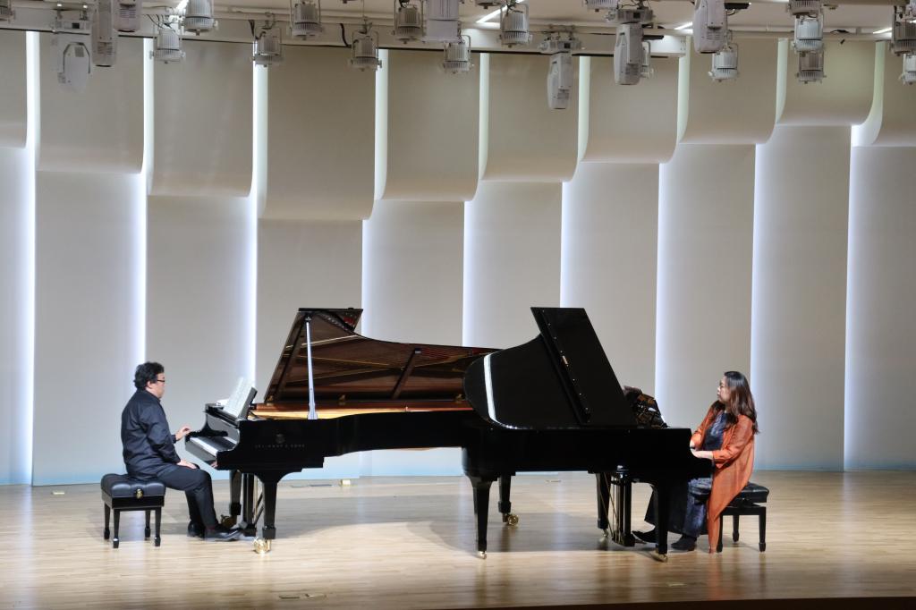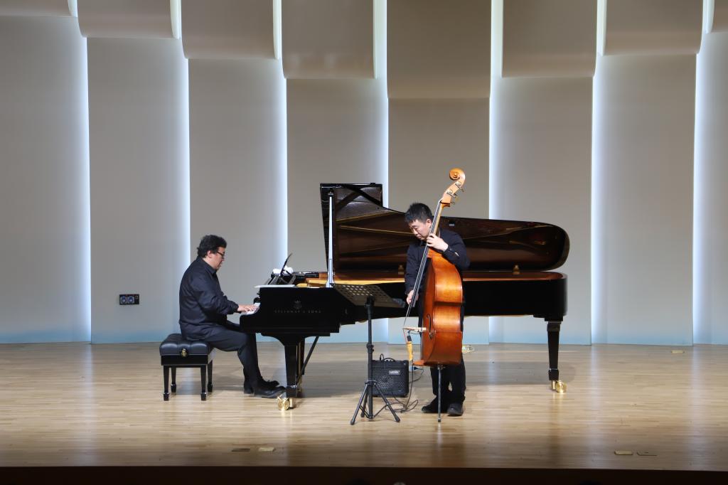 )共同为大家进行了双钢琴演奏。在下半场,崔鸿根与演出嘉宾贝斯手胡浩合作完成了钢琴爵士乐的表演。整场演出古典与爵士碰撞,传统与现代交融。钢琴家完美的演奏赢得现场观众的热烈掌声。