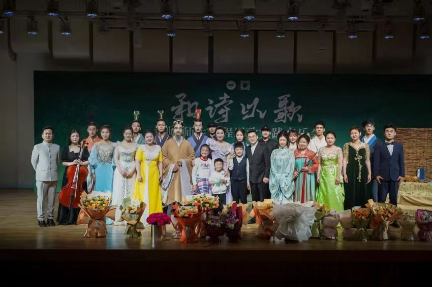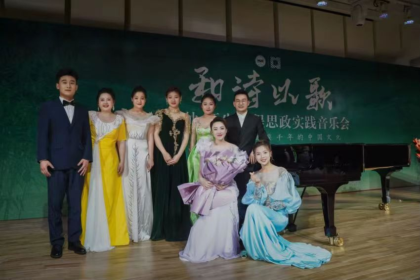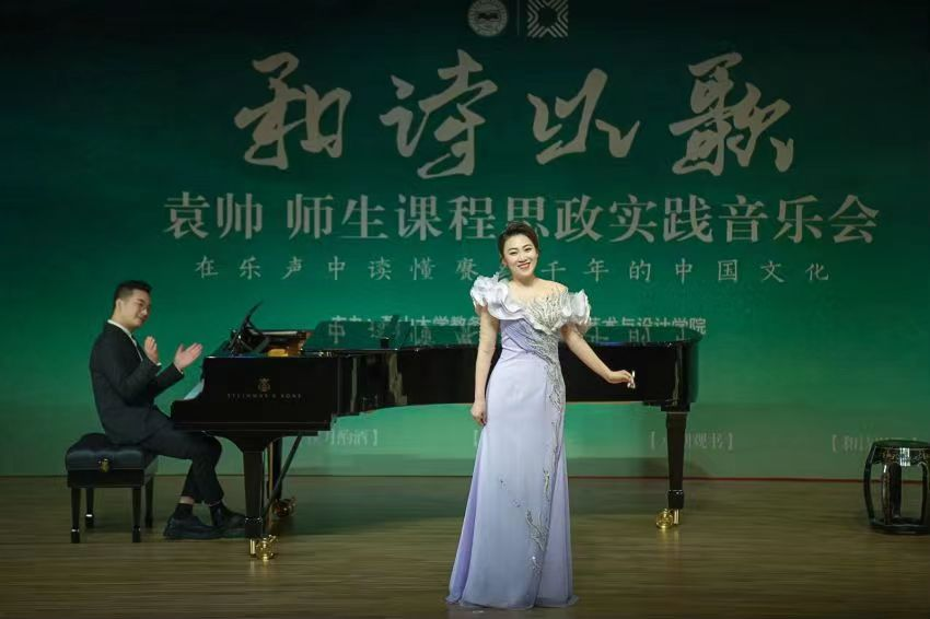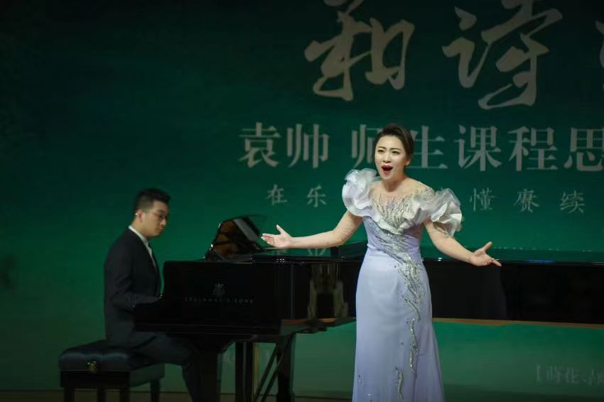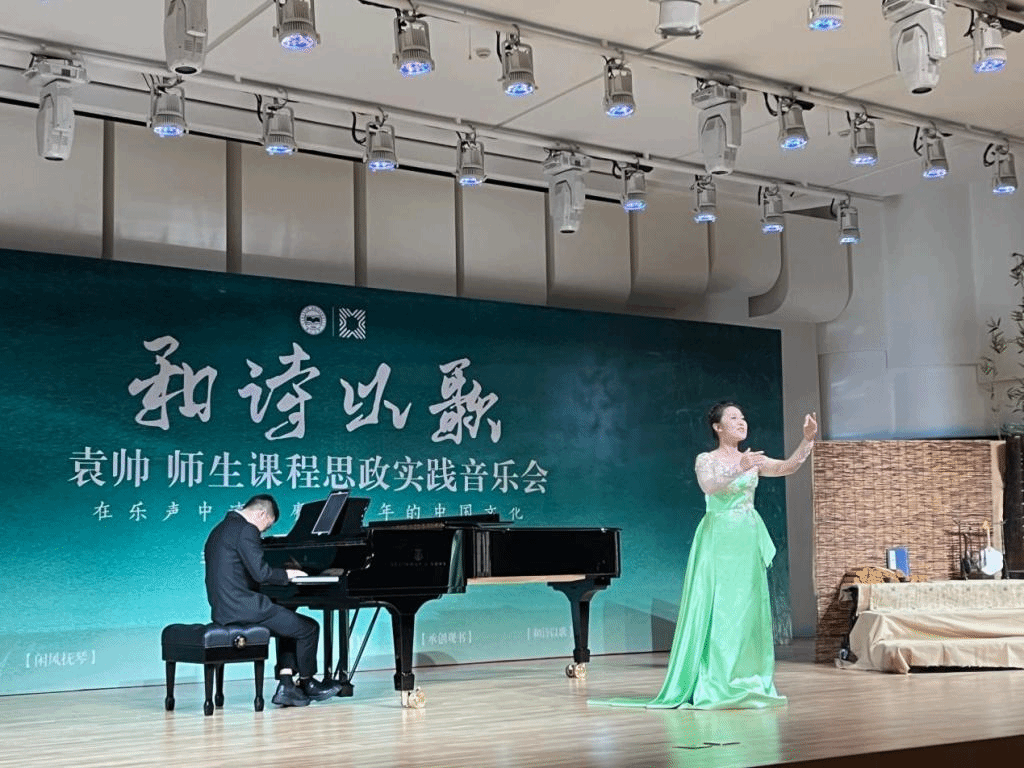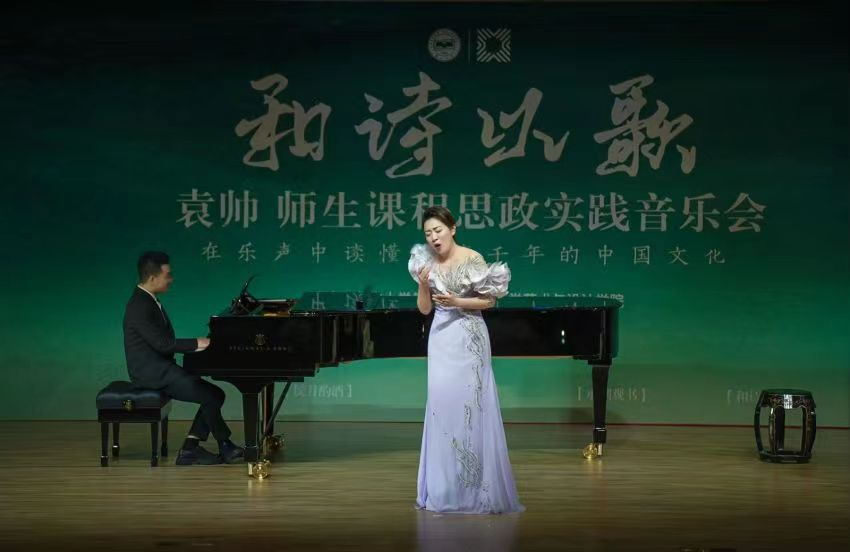成功举办“和诗以歌”—袁帅师生课程思政实践音乐会。习近平总书记指出:中华优秀传统文化是中华民族的根和源,是社会主义核心价值观历史底蕴的集中体现,要推动中华优秀传统文化的创造性和创新性发展。诗歌是中华优秀传统文化的重要组成部分,承载着中华民族的历史与文化。传承古诗词是绵延中华文化,传承古诗词也是实施美育育人的重要体现。袁帅老师在和她的学生们筹备这台音乐会的过程中,为了探索歌唱艺术的本真之源,查阅了大量诗词古籍,学习探索中,他们深深地被震撼,由衷地被折服,每一首被改编成歌曲的古诗词都是经典。诗言志,歌咏言,古人和诗以歌,造就了一首首传唱至今的经典。