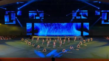 民运会开幕式文艺演出分为《千古燕赵》《盛世华章》《同心筑梦》三个篇章。每个篇章均由我校百家乐游戏下载
