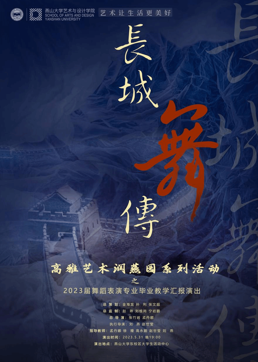长城是中华民族的重要象征和重要标志,为继承中华民族生生不息的精神根脉,回望长城千年变化,燕山大学舞蹈表演专业全体师生以舞现长城文脉、以舞传长城情义、以舞承长城精神,以舞蹈作品展现中华文明灿烂辉煌的文化。