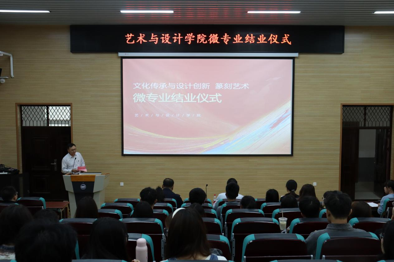 院长孙利、党委书记张文超和“文化传承与设计”、“篆刻艺术”两个微专业教师代表以及26名微专业学生参加了结业仪式,仪式由百家乐游戏下载