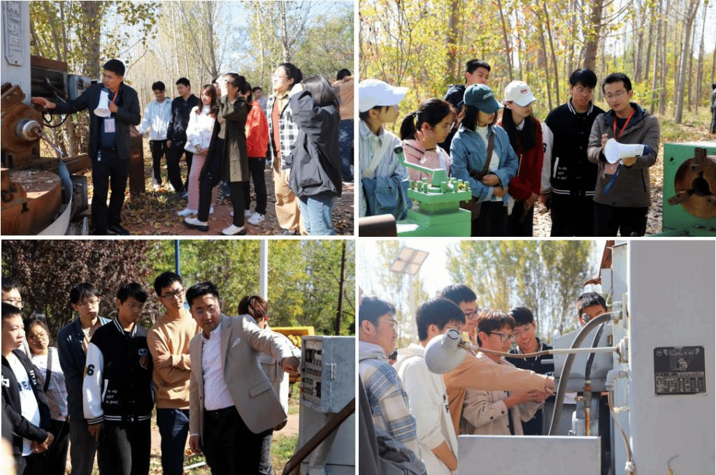 陈建超、王真两位老师为工业设计专业同学现场讲解各型号机床的功用、工艺特征、基本组成和运动原理等内容;随后,工业设计系于鸿飞、陈永亮两位老师结合工业设计理念,展开特殊加工环境下的平台作业人机交互设计原理的介绍,通过设备维护保养、更换零件,加工操作等方面提出设计要素,启发同学们关于工业设备人性化设计的讨论,在现场对同学们进行了详细的讲授。教学现场气氛热烈,同学们认真听讲、仔细参观、积极提问。最后两个班的同学对塔山机械公园的步道、机床台面等周边环境的落叶、灰尘进行了全面清扫。