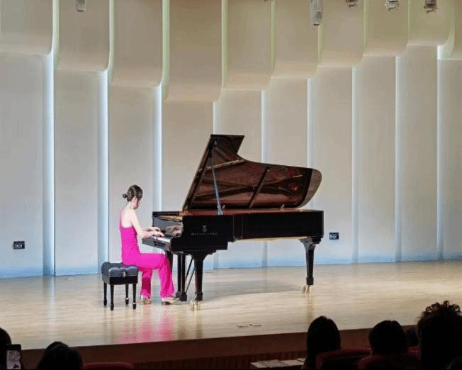 音乐会分为上半场和下半场,上半场弹奏了贝多芬降B大调第二十九钢琴奏鸣曲全乐章;下半场弹奏肖邦作品25的12首练习曲。咸秀沇技艺高超,弹奏曲目行云流水,悦耳流畅,有很强的的共情效应。在长达一个多小时的音乐会结束后,音乐厅响起了热烈的掌声。本次音乐会与学术讲座将学术理论与演奏实践相结合,为艺院学子提供了一个良好的交流学习平台,进一步激发了音乐系学生们对专业学习的热情和积极性;为非专业学生拓展了艺术视野,加强了美育浸润。