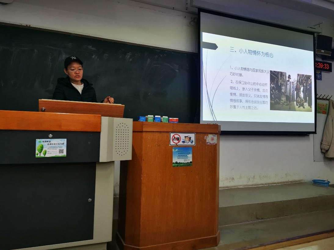 在此次活动中,孙英老师以丰富的教学经验,从影片的历史背景、人物设计和刻画、人物关系、剧情解析等多个维度深入分析了影片。在课程中,她深刻地阐释了《十月围城》通过将小人物情感与国家民族大义精巧结合,将社会政治主题嵌入人性主题之中,深刻表达了无论身份高低贵贱,都可以为了心中的信仰和目标义无反顾地献身。