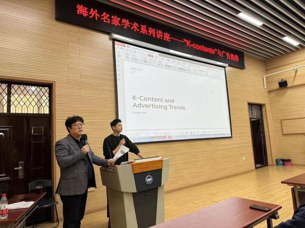 闽炳云(Min Byungwoon)教授为我校传播学领域人才举办“K-contents”与广告趋势的学术讲座。闽炳云教授以独特的视角介绍韩国文化产业,为中韩学术交流增添跨文化的元素,丰富了学生的国际化学术体验,为培养学生跨文化沟通与合作能力提供了借鉴。
