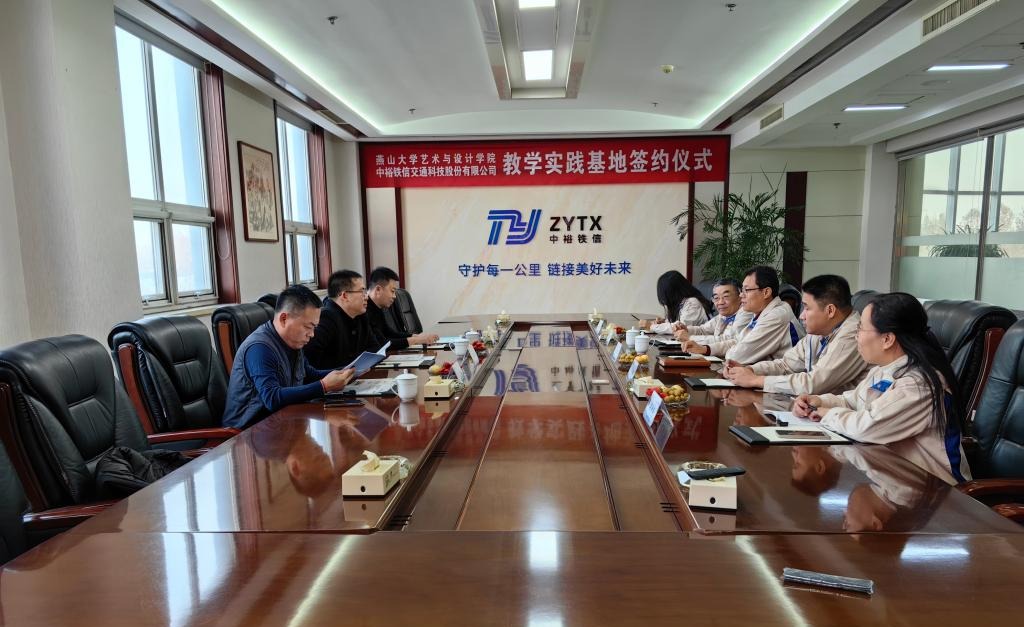 与中裕铁信交通科技股份有限公司举行教学实践基地签约(揭牌)仪式。中裕铁信交通科技股份有限公司副董事长郭勇、行政副总邓乃伏、人力资源部总监张静、经理石新英等参加了座谈交流。双方在“人才培养、人才招聘”一体化机制建设,“河北省工业设计研究院”建设等方面达成了合作意向,并将进一步结合各自特色和优势,推动产学研创新成果落地。