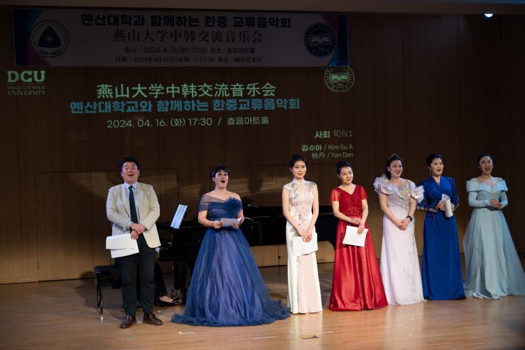 音乐会的高潮部分是由两校教师合唱的《阿里郎》,表达了对韩国传统文化的致敬,赢得观众阵阵掌声。此次音乐会不仅加深了燕山大学与大邱加图立大学之间的学术联系,也为两校师生提供了一个展示才华、交流文化的平台。
