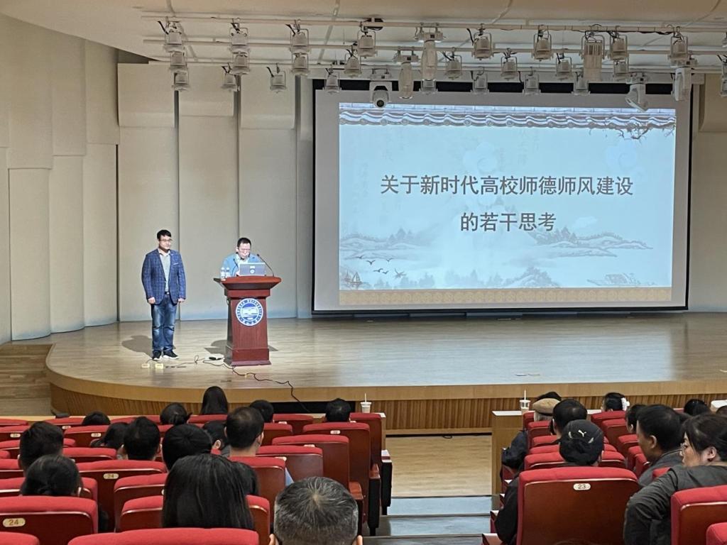 接着,陈步伟教授从新时代师德师风建设的重要意义、违反师德师风的现象及根源、相关法律法规、新时代争做“大先生”四个方面,具体讲述了师德师风的影响,运用详实的典型案例为老师们敲响警钟,提醒老师们要谨言慎行,修身、修心,不断地学习进步,才能成为一名合格的高校教师。