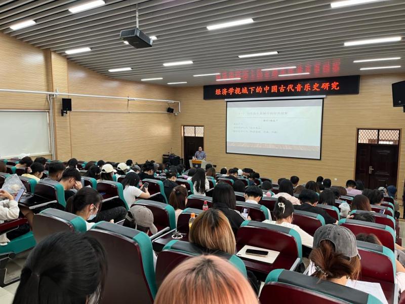 院长韩启超教授,作题为《经济学视域下的中国音乐史研究》的学术讲座。讲座由刘维尚副院长主持,百余名音乐系师生参加。