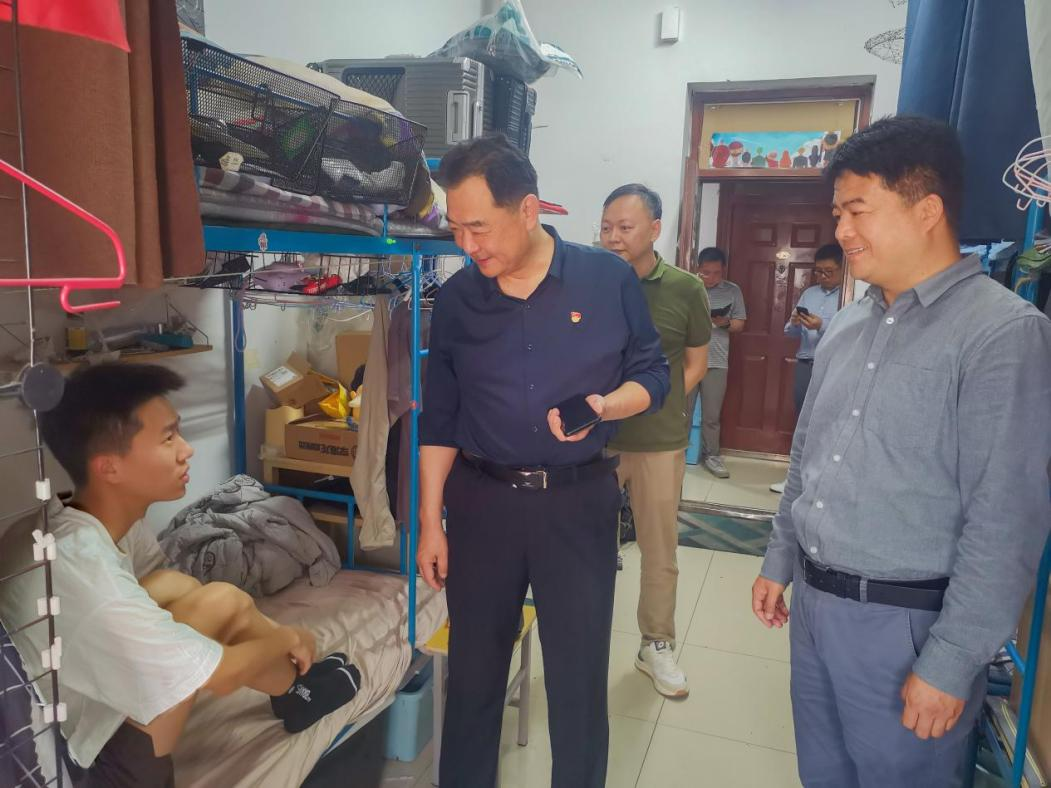 班子成员、辅导员们仔细查看了用电安全、消防设施、门窗安全等方面的情况。