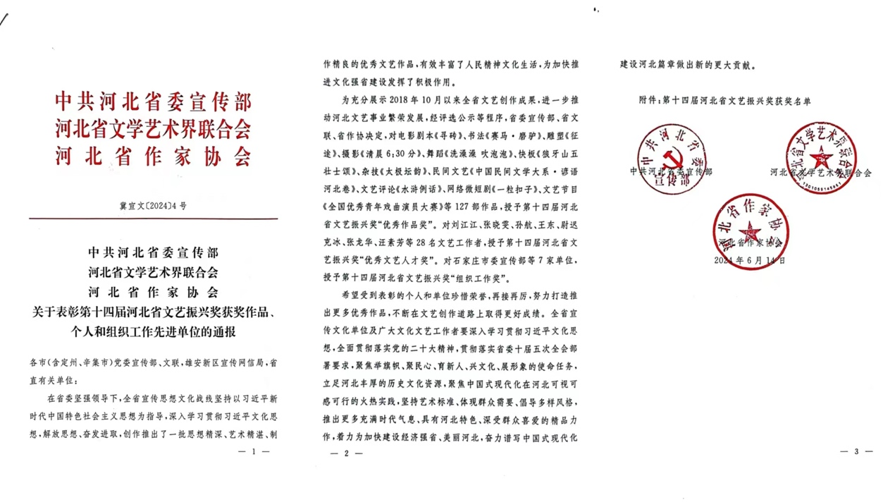 近日,第十四届河北省文艺振兴奖获奖评选结果揭晓。我校百家乐游戏下载