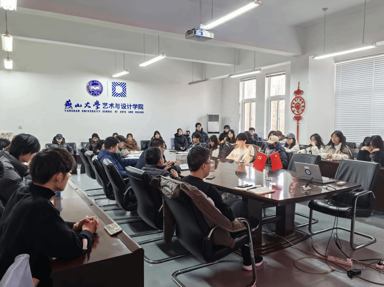 副院长王年文、副书记宁岩鹏、2024级辅导员丁旺龙、工业设计系主任侯士江及2024级设计学类3、4班同学参加座谈会。