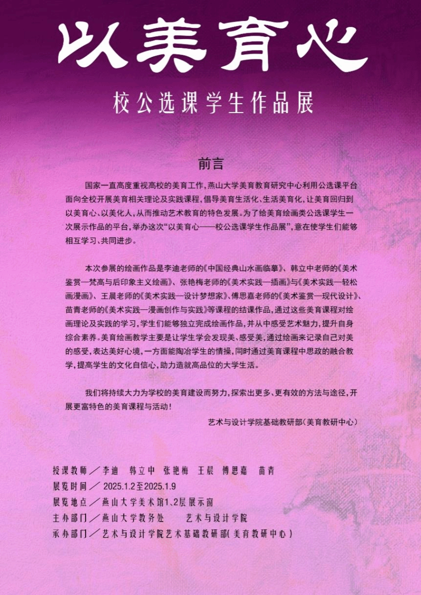 2025年1月2日,“以美育心”校公选课结课作品展在百家乐游戏下载-百家乐单机版
