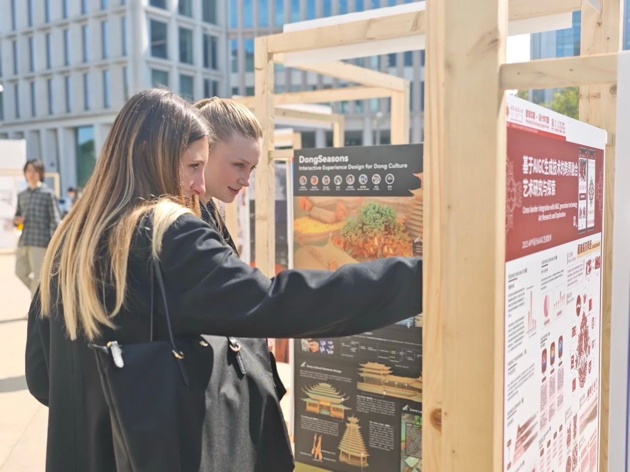 师生作品《数与绿》、《二十四节气IP,花瓣剪纸设计》有幸成为此次展出的优秀作品之一。此次参展作品涵盖了视觉传达设计、产品设计、环境空间等多个类别,充分展示了中国设计教育的丰硕成果,有力推动了中意欧设计教育领域的交流与合作。展出现场吸引了众多国际观众欣赏讨论。