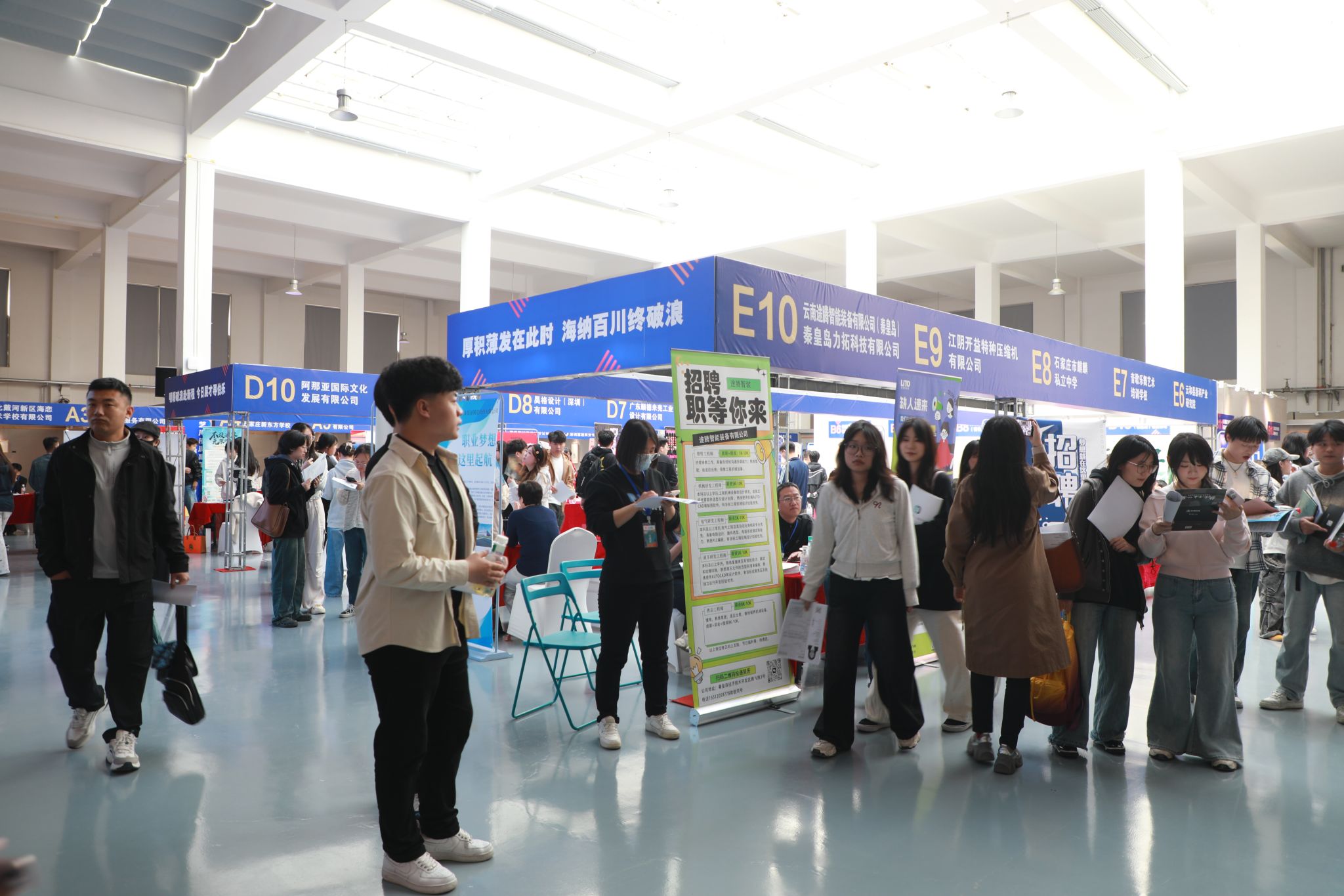 招聘会现场同学们手持精心准备的简历,积极主动地与用人单位对接交流,了解岗位要求及职业发展路径等信息,各用人单位通过易拉宝、宣传手册、现场宣讲等形式,全方位展示百家乐游戏下载和人才招聘需求,并耐心解答同学们咨询的问题。许多展位前排起长队,学子们展现出极高的求职热情与专业素养。