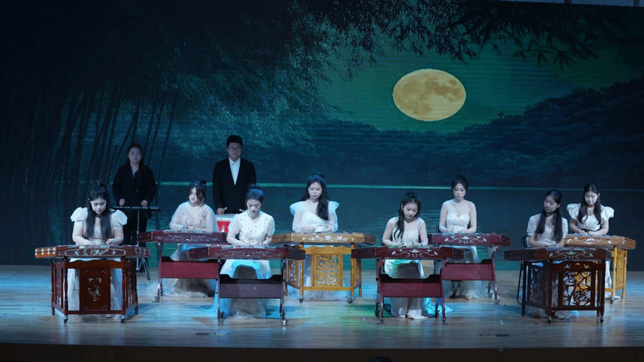 扬琴重奏《翡翠》表演中,清脆音色相互交织,似翡翠闪烁光芒,传递东方音乐独特韵味;琵琶重奏《丝路驼铃》用琵琶模拟驼铃与大漠风声,带领观众感受丝绸之路的孤寂与壮阔;古筝重奏《盛世国乐》以悠扬筝音展现盛世繁荣昌盛,彰显民族器乐的独特魅力;民乐合奏《我的祖国》采用多种民族乐器共同奏响,表达对祖国深深的热爱与赞美。