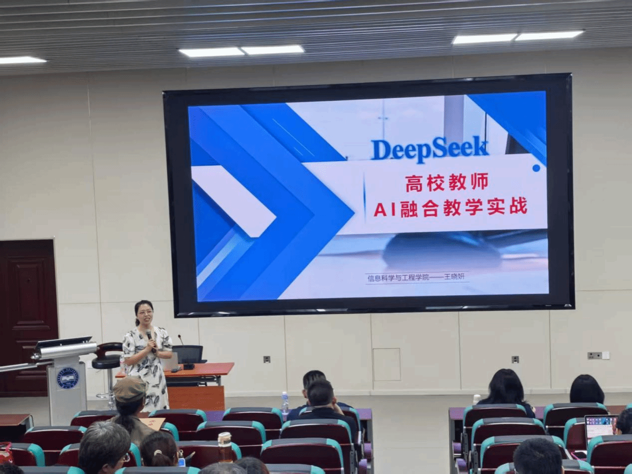 培训会上,王晓妍老师以“DeepSeek-高校教师AI融合教学实战”为主题,聚焦AI前沿探索教育新生态,解锁教学科研新场景,深入剖析了AI技术对教育教学的革新作用。她指出:“AI不是我们的敌人,而是我们的伙伴,是我们的数字分身”。