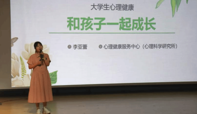 李亚蕾以“和孩子一起成长”为主题与新生家长交流分享。她结合生动案例,用轻松真挚的语言介绍了目前大学生的心理健康现状,就学习压力、环境适应、人际关系等外在困扰,以及成年初期自我同一性构建等内在成长问题进行了分析并提出了建议。分享了家长自我关爱方法,助力家长朋友们以良好的状态陪伴孩子一起成长,成为智慧型、学习型、警惕型家长。李亚蕾还介绍了学校心理咨询服务工作情况和求助渠道。