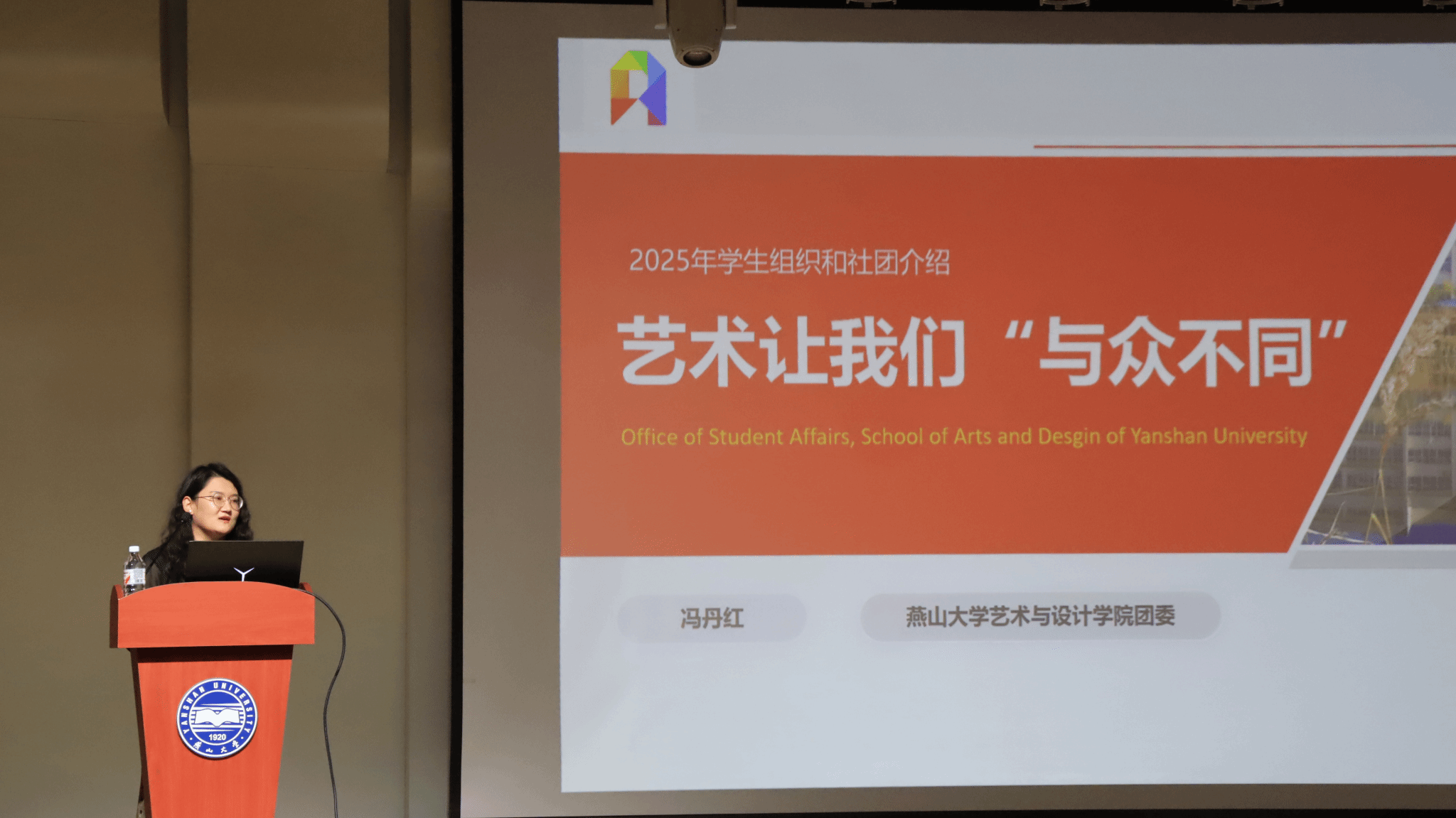 机构设置、师资力量、学科建设、专业布局与人才培养体系,为同学们作了全景式介绍。最后他以一条凝聚艺术家爱心的“鱼”的创意设计为引,勉励大家拥抱专业、践行使命、锤炼品格。