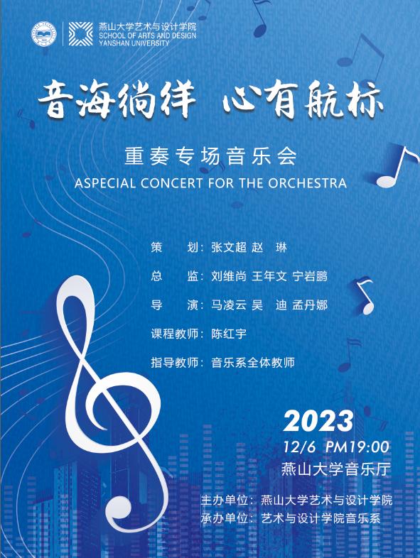将于2023年12月6日举办“音海徜徉 心有航标”音乐表演专业重奏专场音乐会。