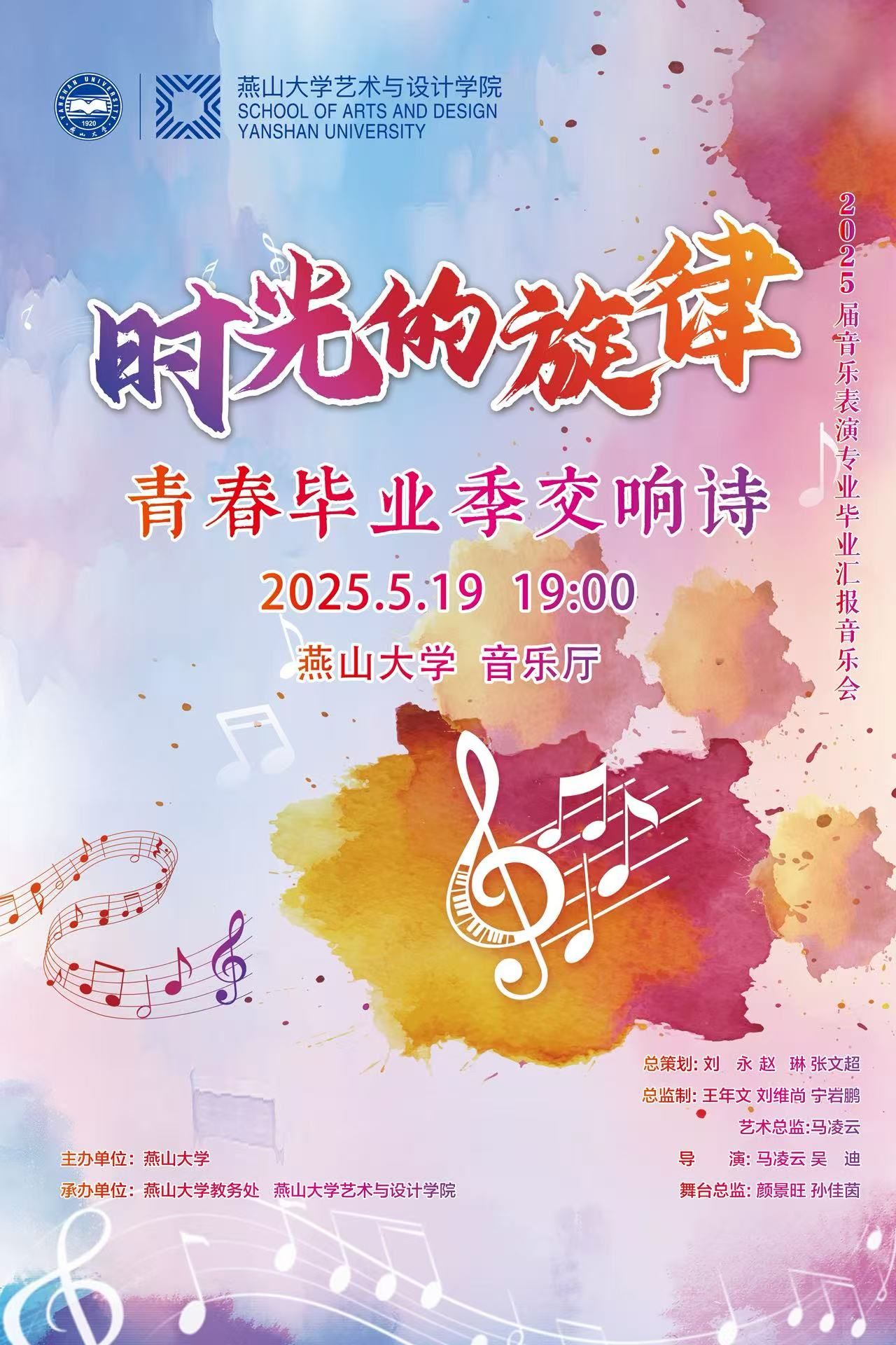 2025届音乐表演专业毕业生。2021年的秋天,我们怀揣音乐梦想相聚燕大,共同谱写了四载春秋的华美乐章。音乐厅里的歌声、舞台上的掌声、深夜琴房的星光,交织成青春最珍贵的记忆。如今,我们即将告别母校,带着对艺术的执着与热爱,踏上人生的新舞台。